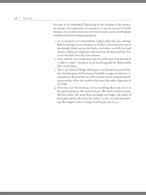At some point I started searching through the book for the pranayama section there isn't one, I was surprised at my reaction. In the past I might have felt frustrated, disappointed but if we can attain some small measure of what Richard is indicating is available to us in our asana practice then Pranyama holds less of it's allure. Besides, Richard has a pranayama courses where he is able to go into more detail than here, I've taken the course it's excellent.
